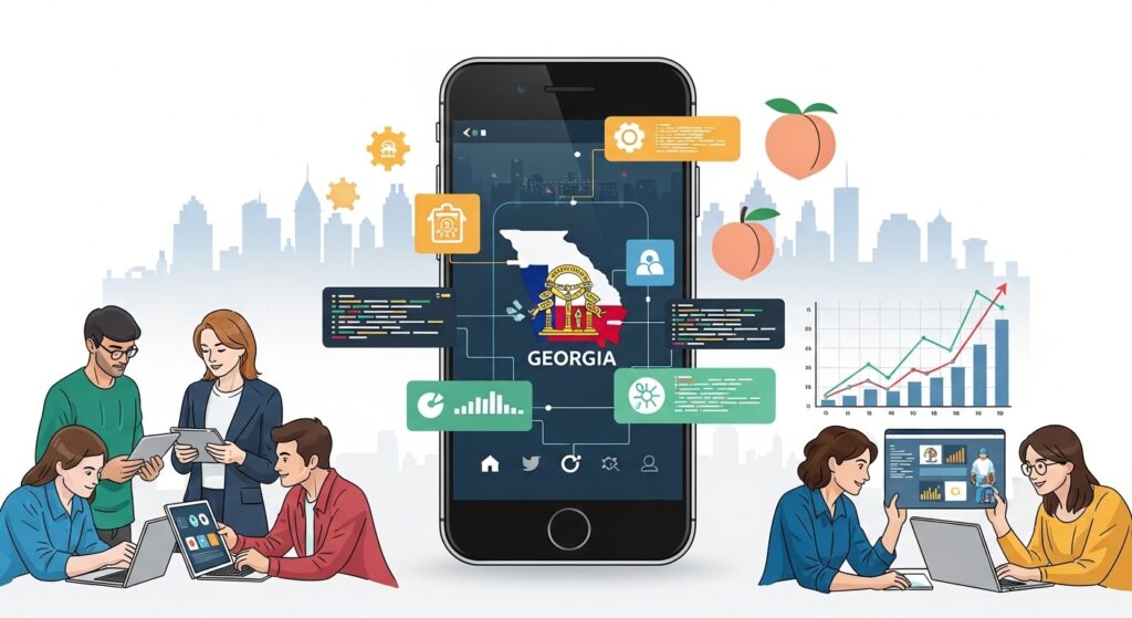 Investing in mobile app development in Georgia has become essential for businesses aiming to grow. Metro-Atlanta experienced mobile commerce transactions increase by 22% year-over-year in 2024, while Savannah and Augusta saw app-driven sales rise by 18%, reflecting strong adoption of mobile platforms across both large and emerging tech hubs.
