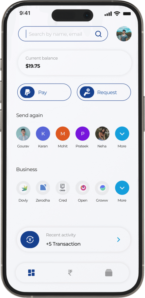 Our PayPal clone app allows users to send and receive money, store payment methods, create invoices, and manage transactions seamlessly. It works similarly to PayPal, with multi-layer security, real-time updates, and a user-friendly interface. Users can link their bank accounts or credit cards, making it easy to make transactions through the PayPal clone development service.