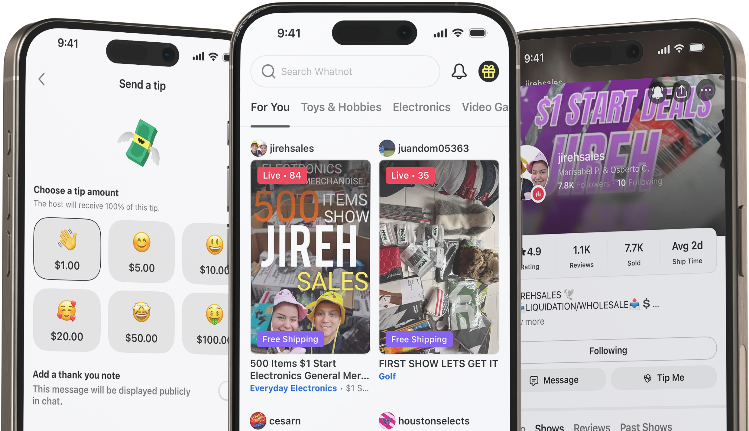 Features of the Whatnot Clone App